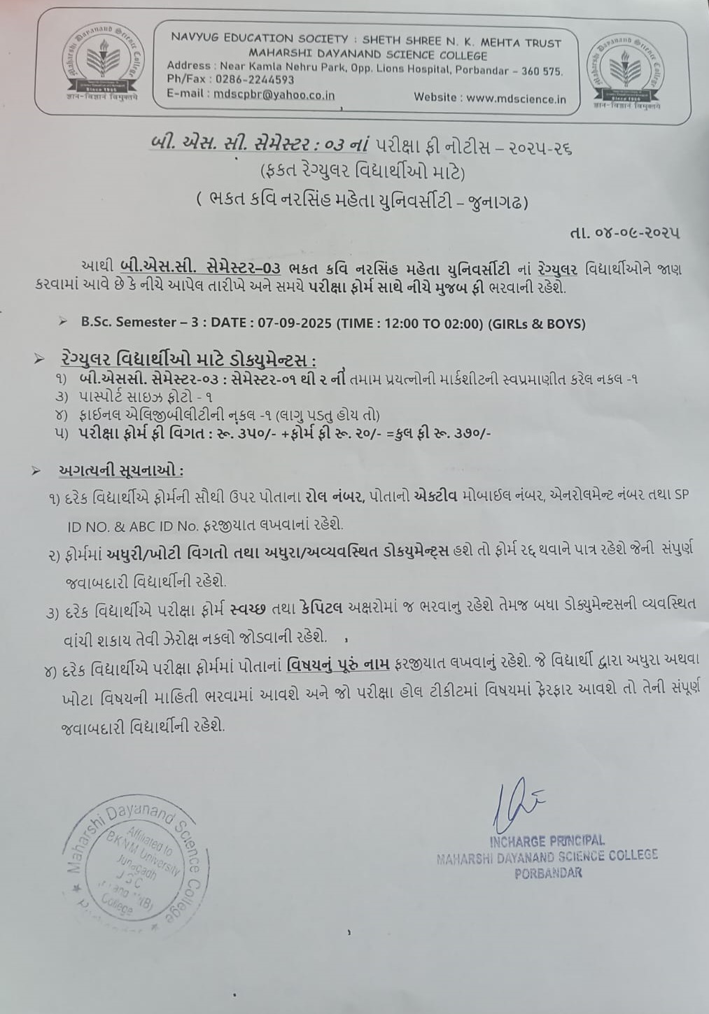 WELCOME TO MAHARSHI DAYANAND SCIENCE COLLEGE